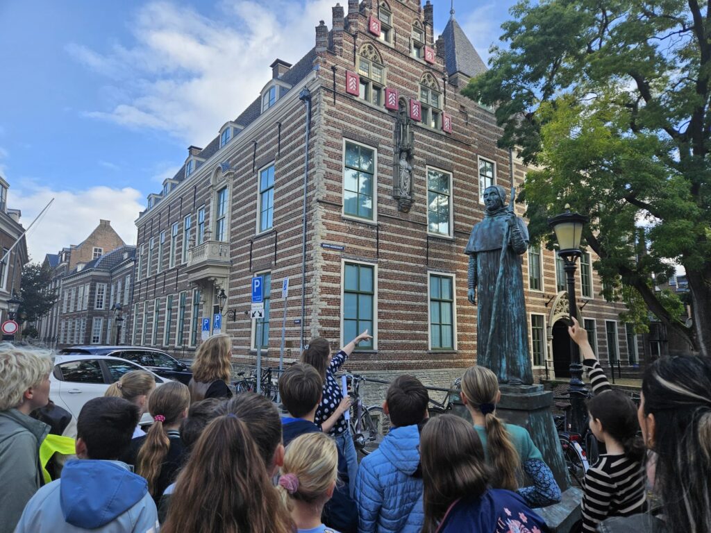 Bijna vijfhonderd leerlingen van Utrechtse basisscholen deden mee aan de Open Monumenten Klassendag op vrijdag 12 september. Tijdens de veertiende editie van dit evenement bezochten de leerlingen een van de volgende iconische monumenten: Wolvenpleingevangenis, de Stadsschouwburg, het St. Eloyen Gasthuis, het Broodhuis, Het Utrechts Archief, de Fundatie van Renswoude en Paushuize. In deze monumenten werden de leerlingen ondergedompeld in de geschiedenis: ze leerden middeleeuws schrijven bij Het Utrechts Archief, gingen aan de slag met Hebreeuws in het Broodhuis en kregen van alles te horen over de tradities van het St. Eloyen Gasthuis.